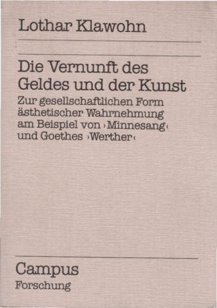 Die Vernunft des Geldes und der Kunst : zur gesellschaftlichen Form ästhetischer Wahrnehmung am Beispiel von "Minnesang" und Goethes "Werther" / Lothar Klawohn
