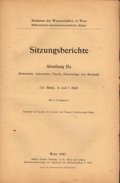 Sitzungsberichte : Abteilung 2a ; 131. Band. 6. und 7. Heft